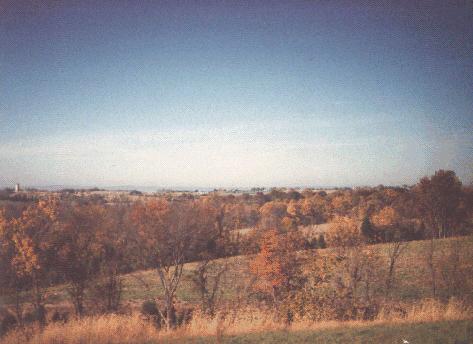 What should be apparent from this view is that observation of the battlefield from this location is difficult under any circumstances. Add any haze of battle smoke, and one gets a sense of the difficulty of directing a battle at this distance. Nonetheless, General McClellan was content to remain near here for the duration of the battle.